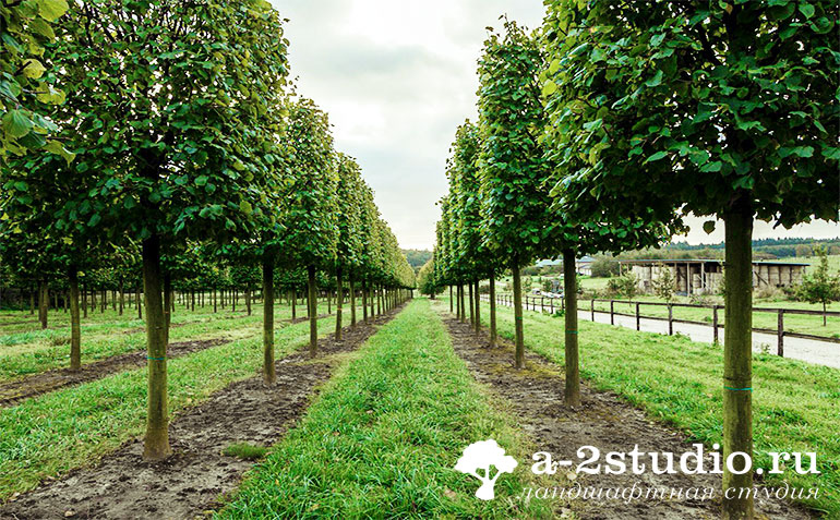 Липы также подходят для выращивания на шпалерах, если необходимо создать исключительно плоские кроны толщиной всего 15–20 см. Обычно они формируются в виде круга, овала, квадрата, прямоугольника или более сложных фигур. Такие деревья занимают минимальное пространство на участке, обеспечивая защиту от ветра и создают тень в утреннее и вечернее время.